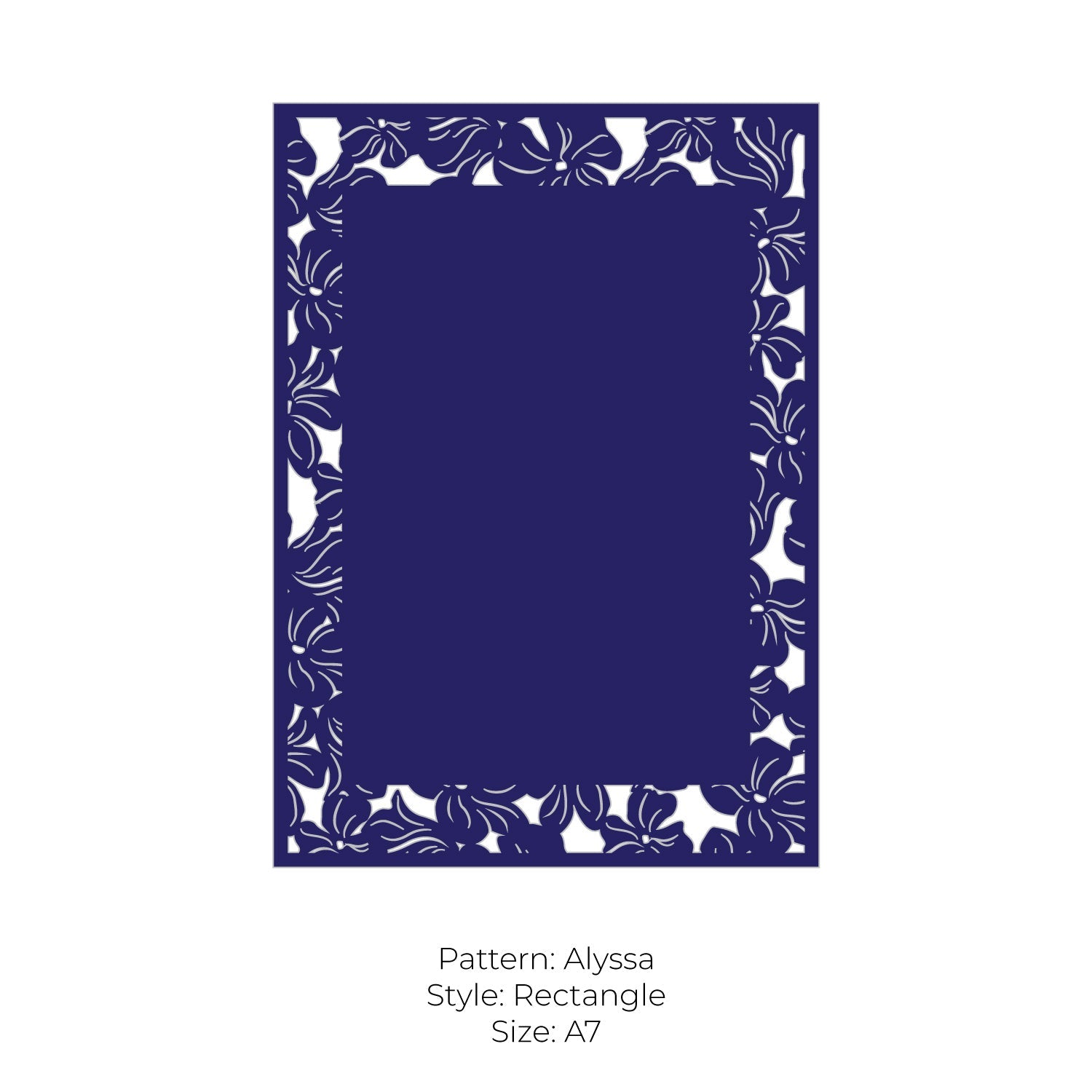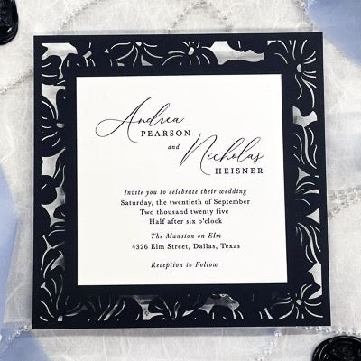 Alyssa is simple, but striking floral pattern of laser cut peonies, that is remarkably versatile. Depending on color, and typography, it can be light and cheerful, elegant and romantic, or formal and sophisticated. This is easily one of our most flexible and beloved laser cuts.