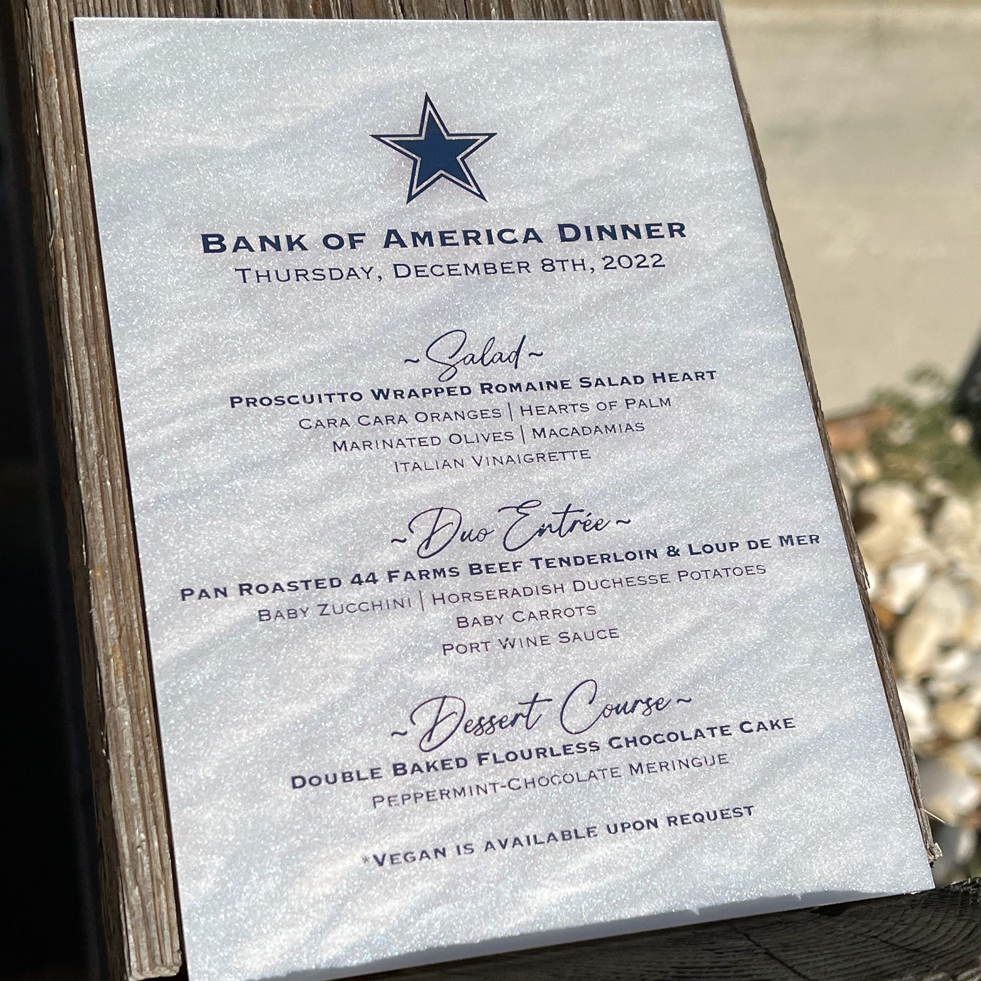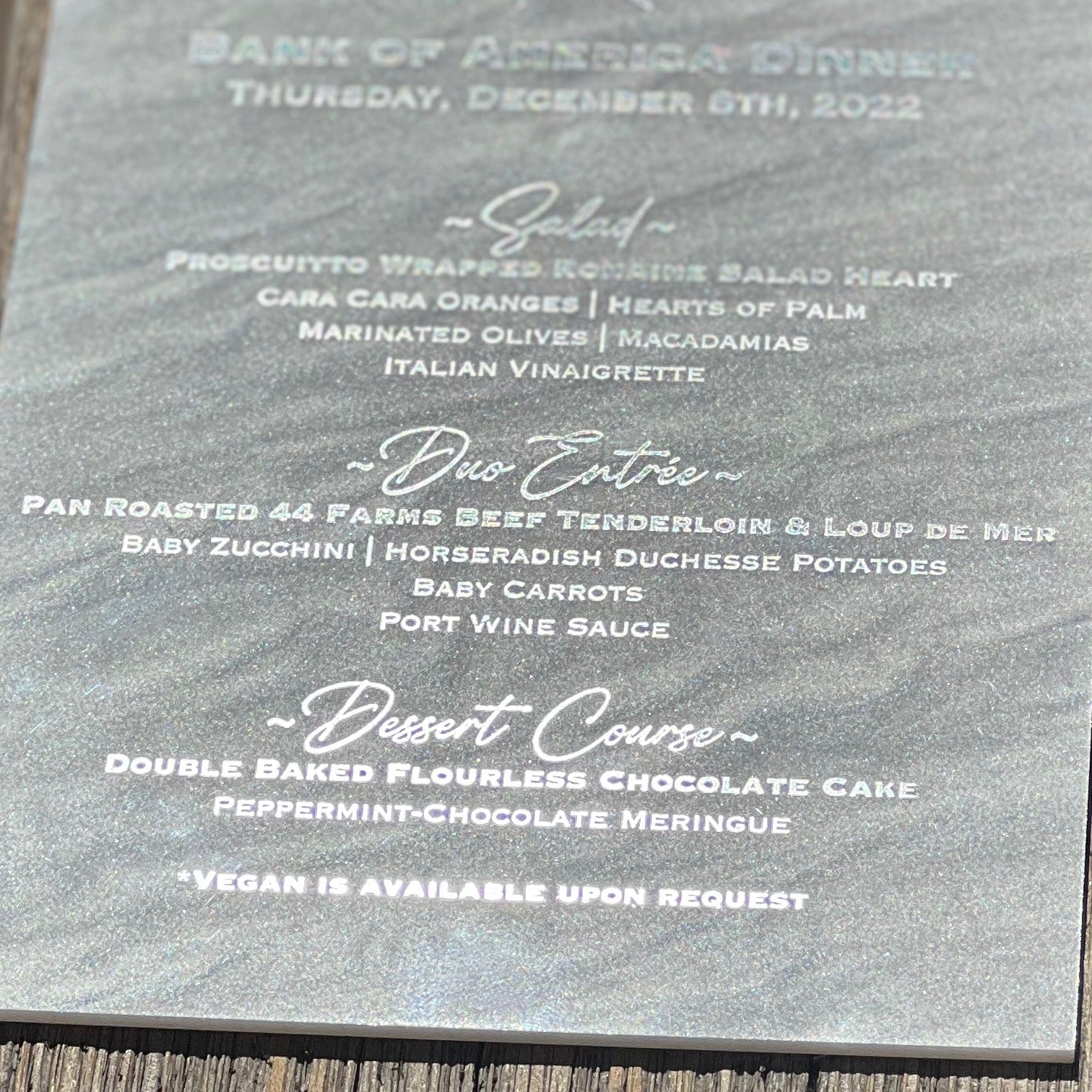 Pricing: $250 setup, plus $6 per invitation, with a minimum of 25 pieces. Contact us to create a show-stopping element that sets the tone for your event with unmatched style and refinement.