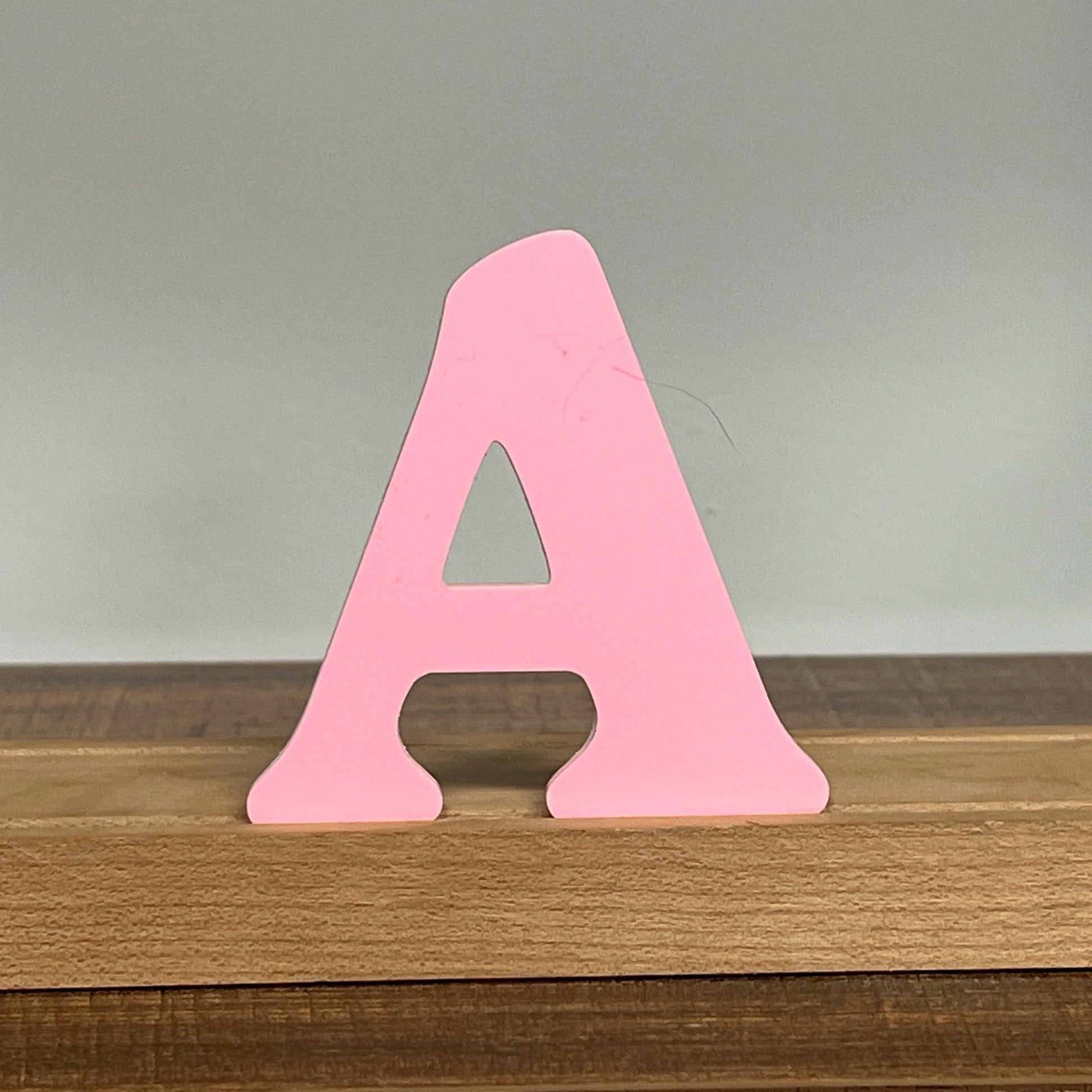 Letter bodies are 5” tall, in matte pastel pink acrylic, in a playful, serif typeface.