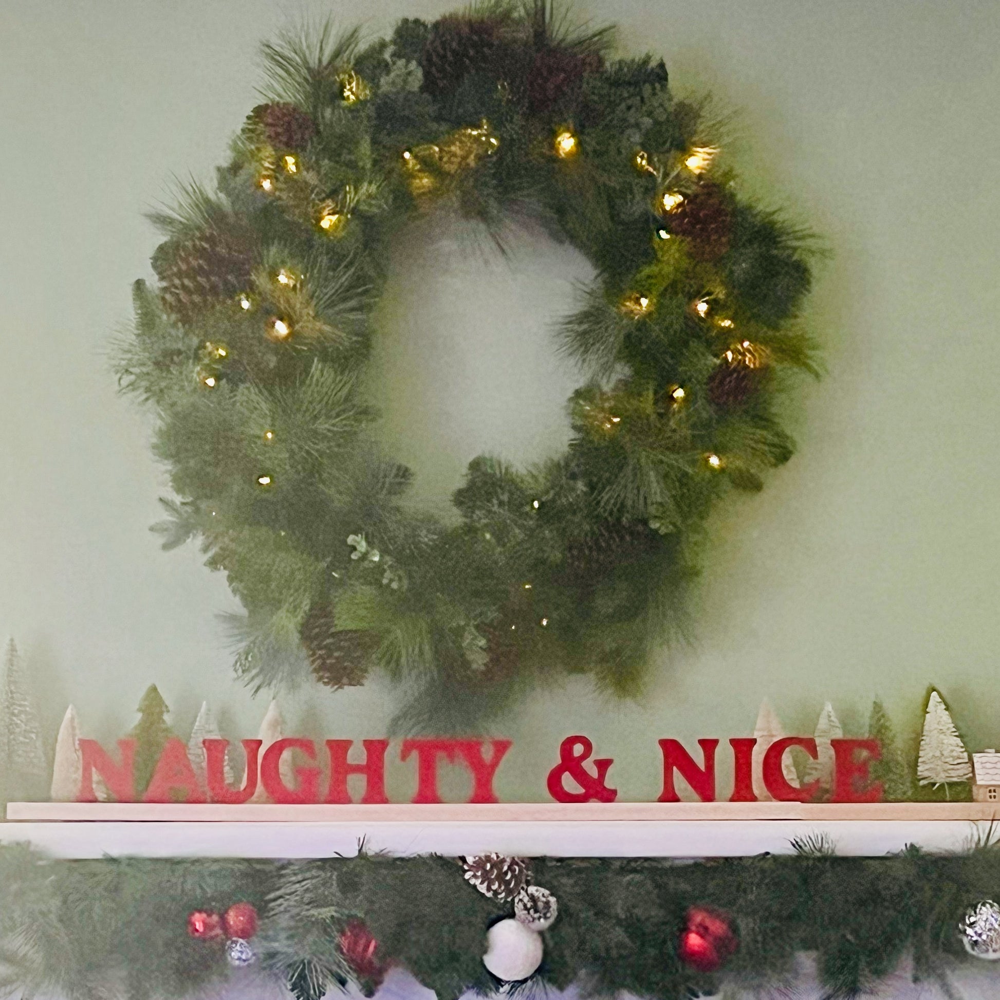 Bring a dash of holiday humor to your décor with our “Naughty and Nice” acrylic letter kit, beautifully arranged on a sleek maple rail. Choose from classic red, crisp white, or our fun ‘peppermint’ style—featuring alternating red and white letters for a candy-cane flair that’s sure to bring smiles.